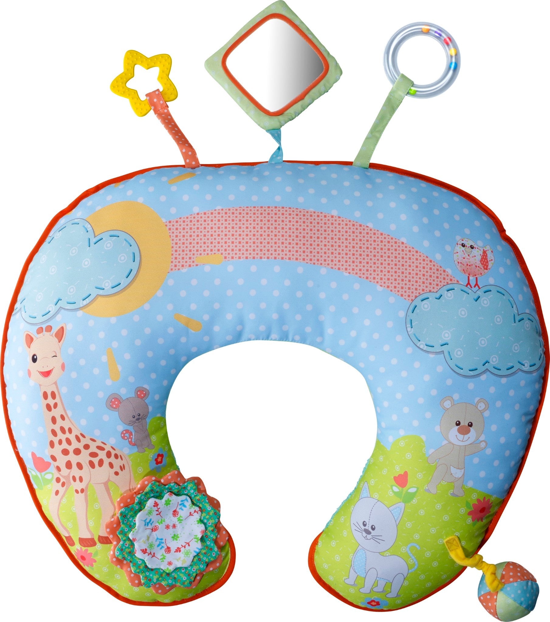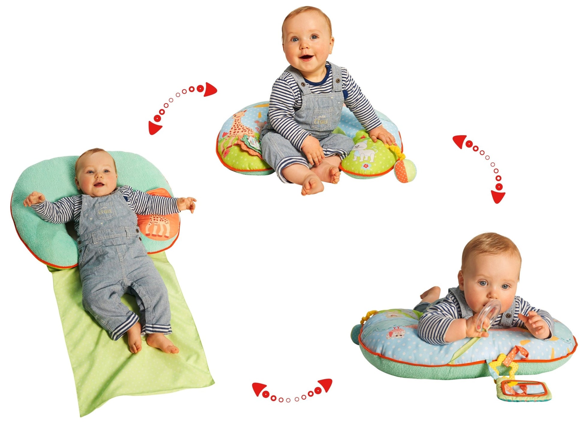 Thanks to its reversible rest side and early childhood development side, this cushion can entertain or relax baby!
